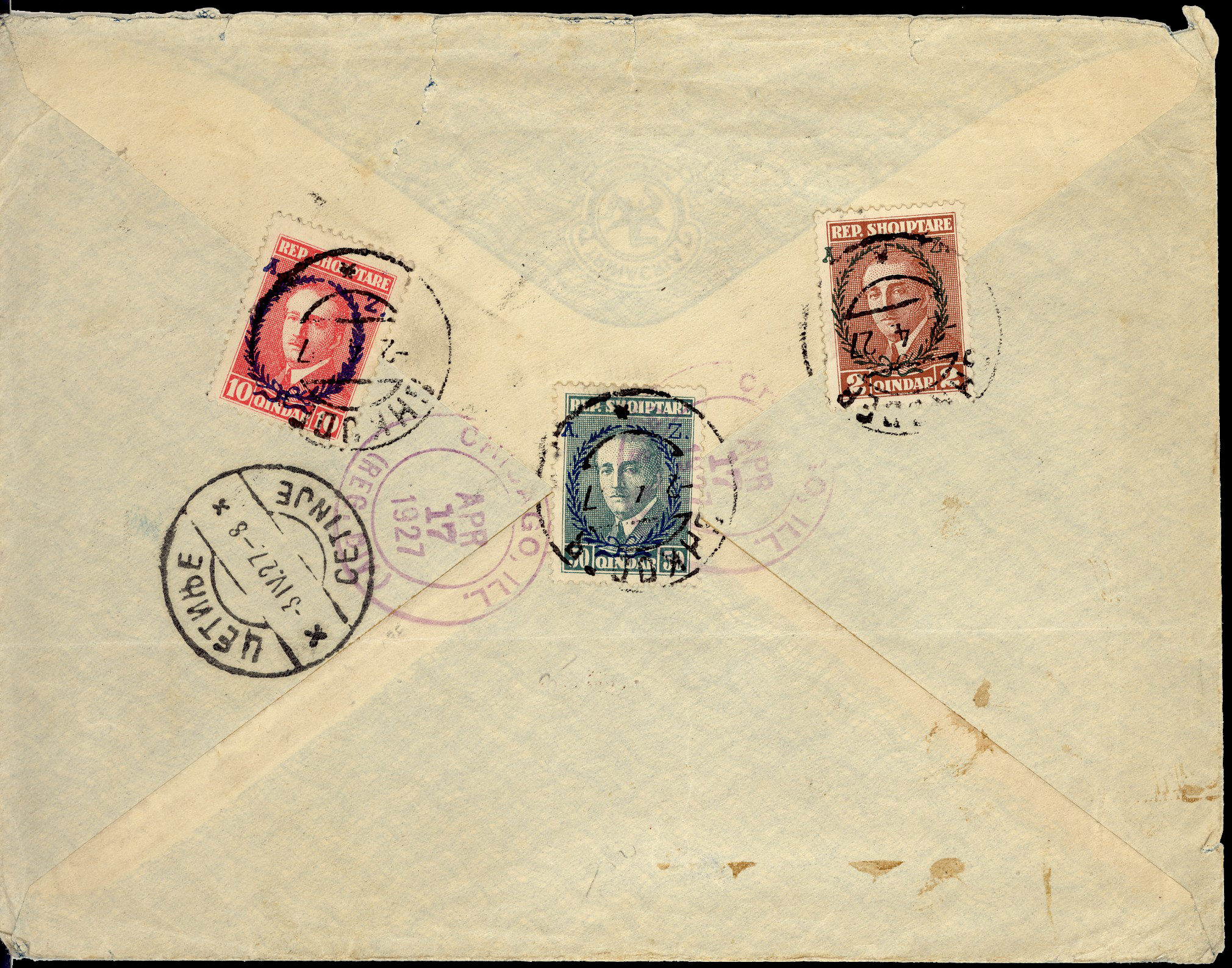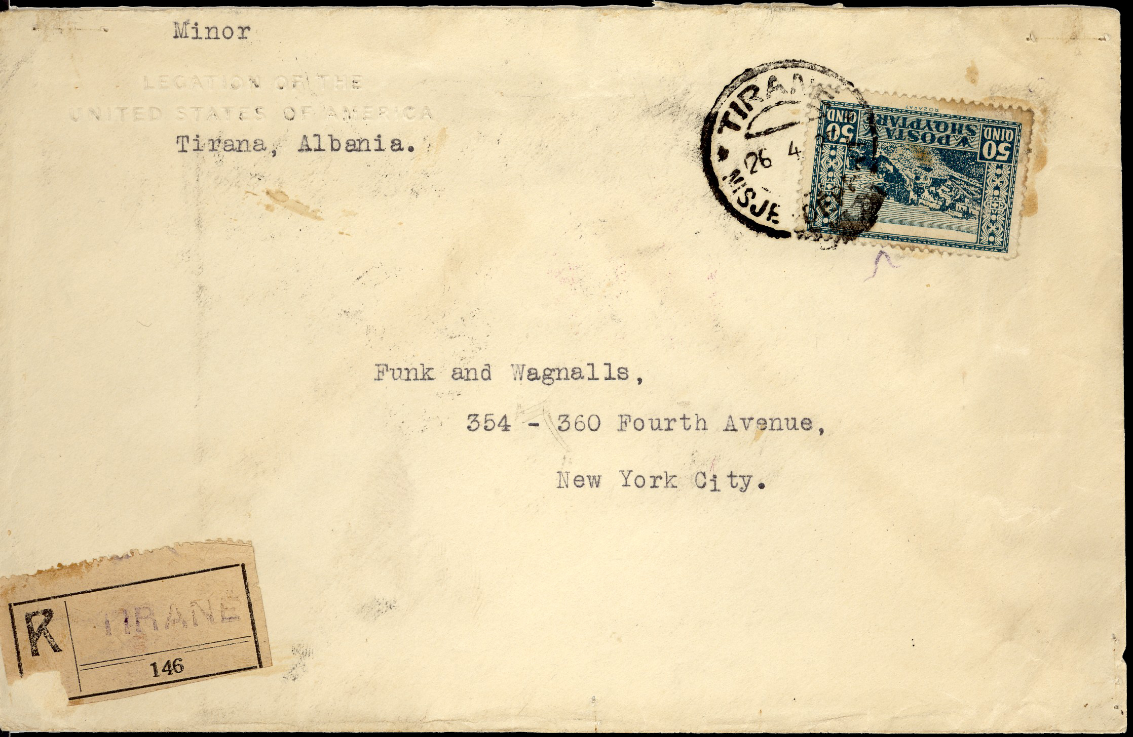 registered letter from Tirane 26th April 1925 to New