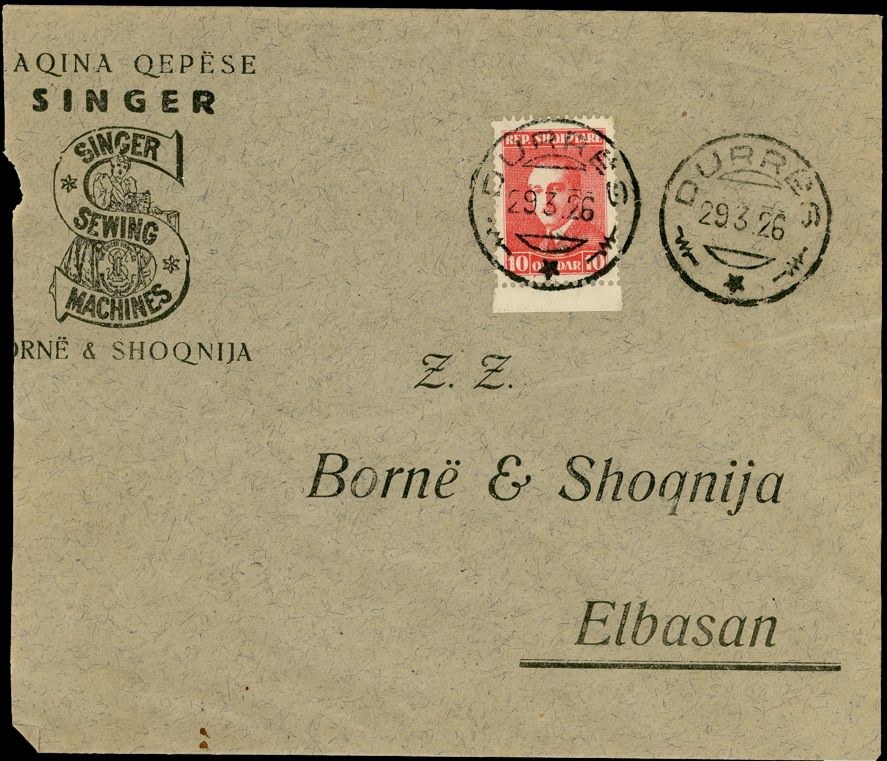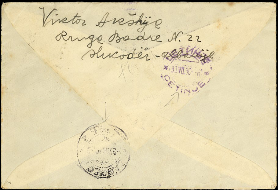 registered, commercial letter cancelled Shkoder 2nd