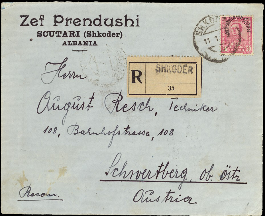 Shkodėr 11th January 1928 and addressed to Schwertberg i
