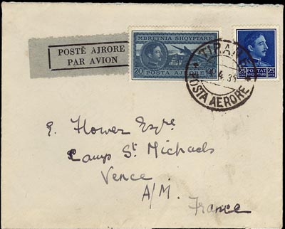 cancelled Tirane 27th October 1939 and sent to New York,