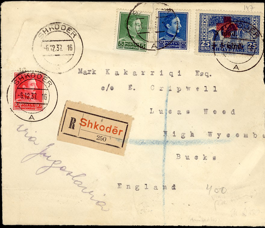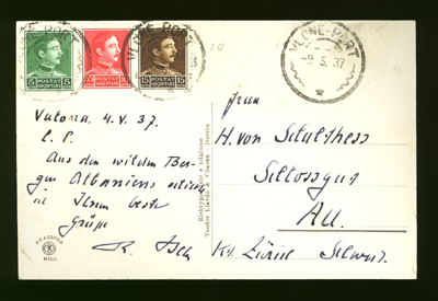 Tirane 11th December 1937 to Wien in Austria.