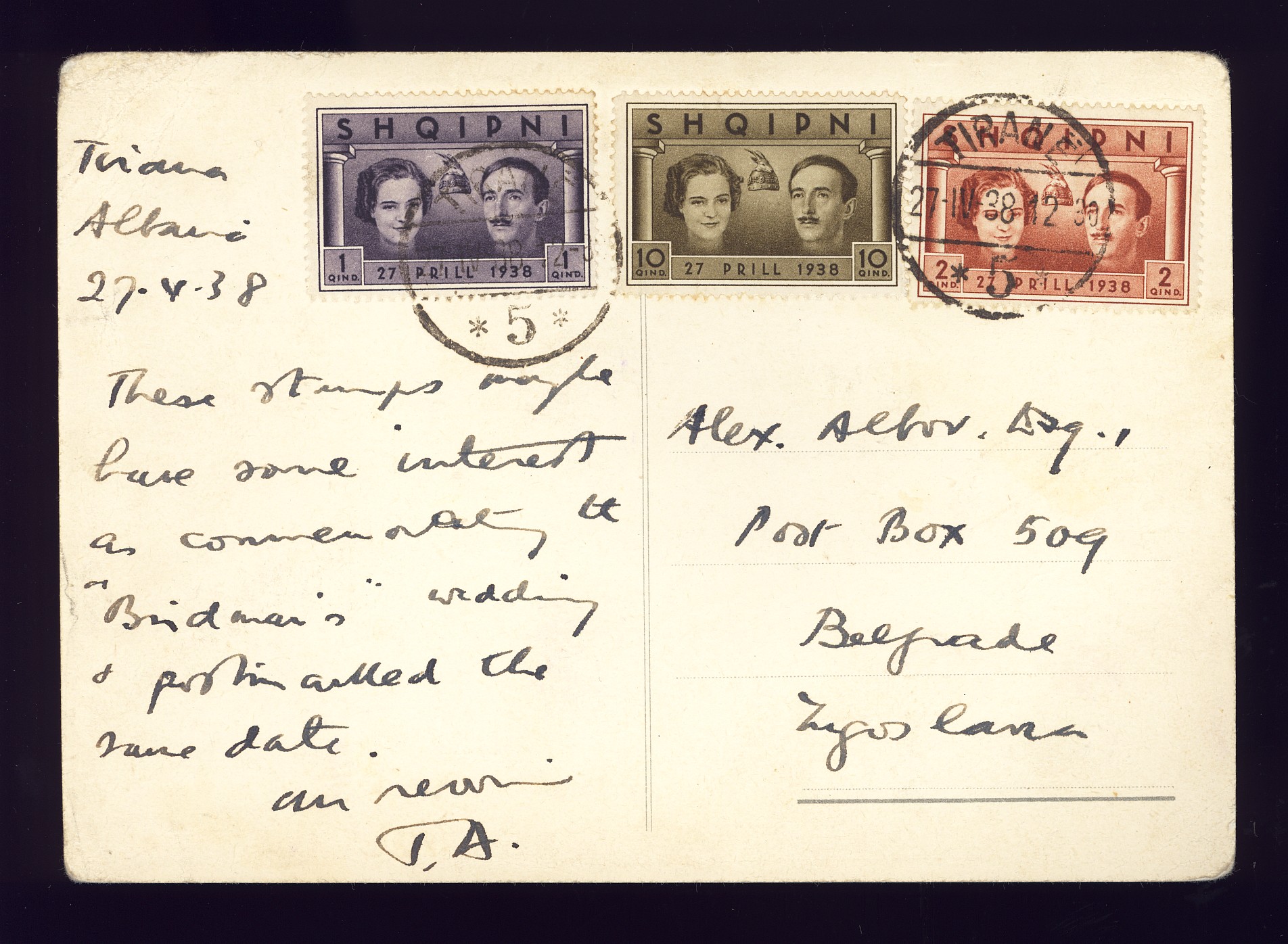 27th April 1938, bearing 1, 2 and 10 q of the wedding