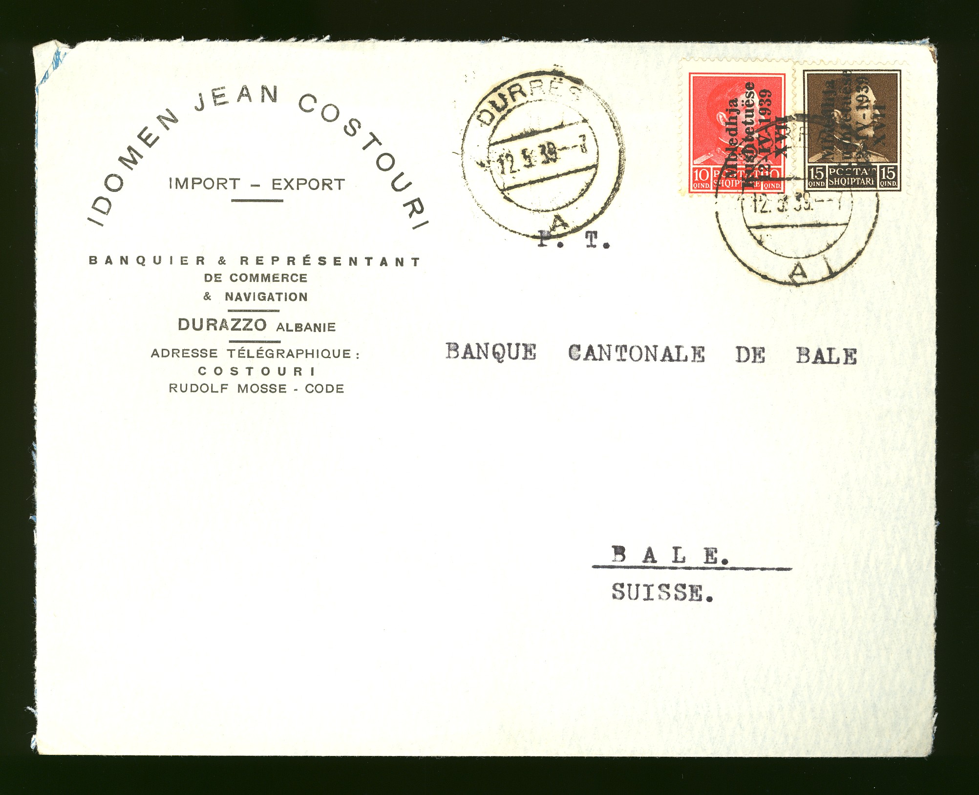overland, bearing the 10 and 15 q of the 12th April 1939