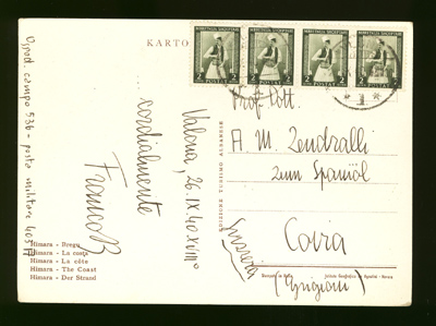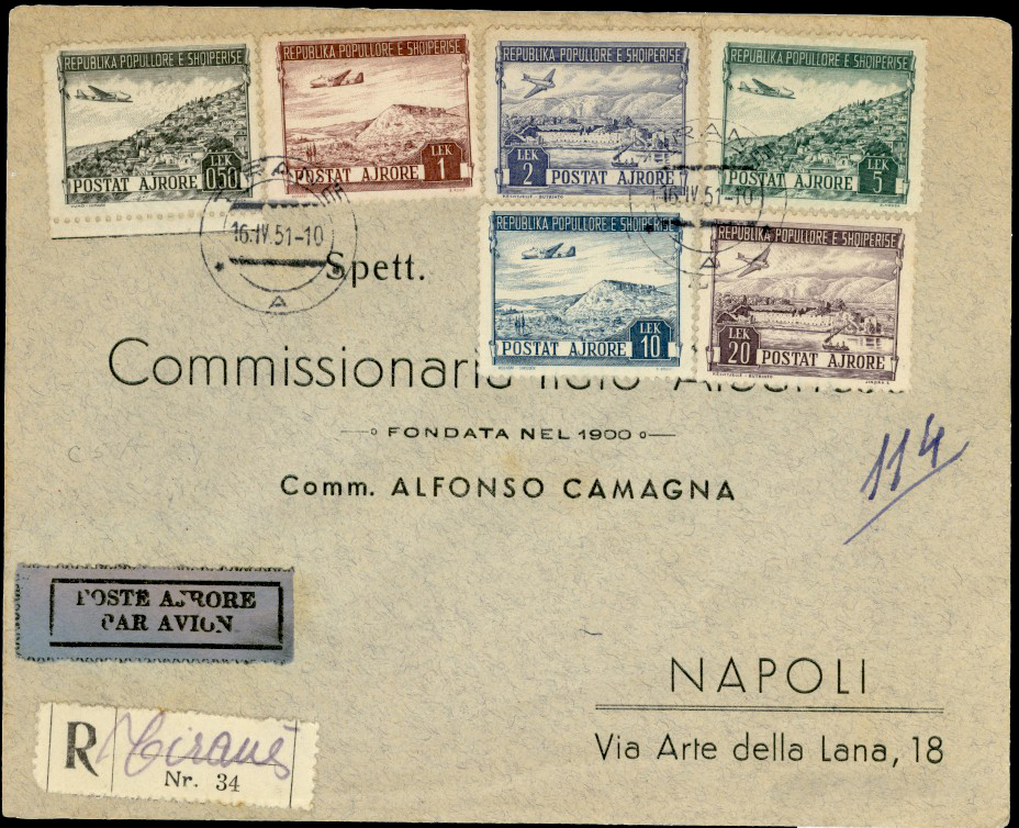 letter from Tirane 16th April 1951 to Napoli in Italy,