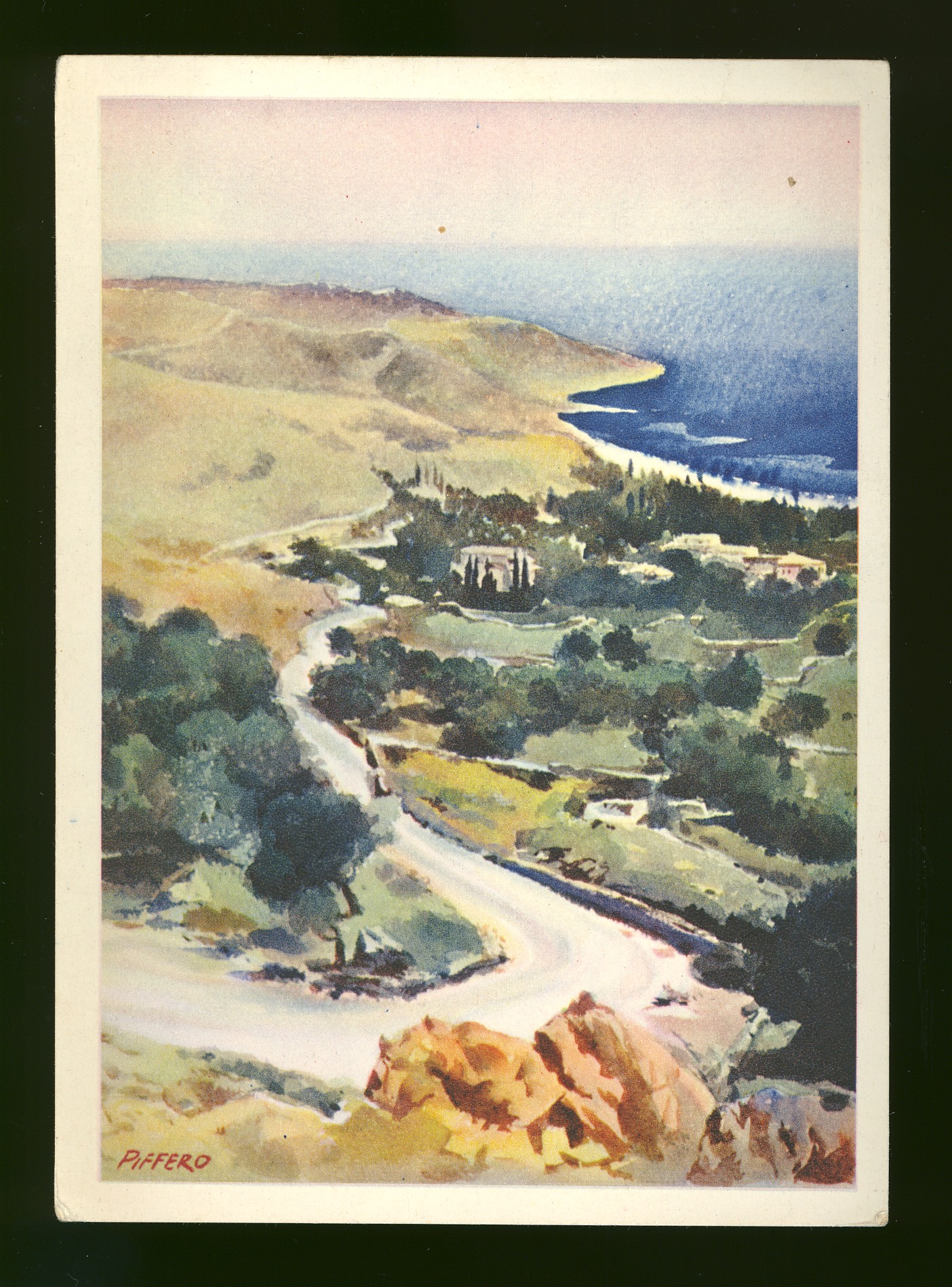 The motive of the post card is the coast at the Himara