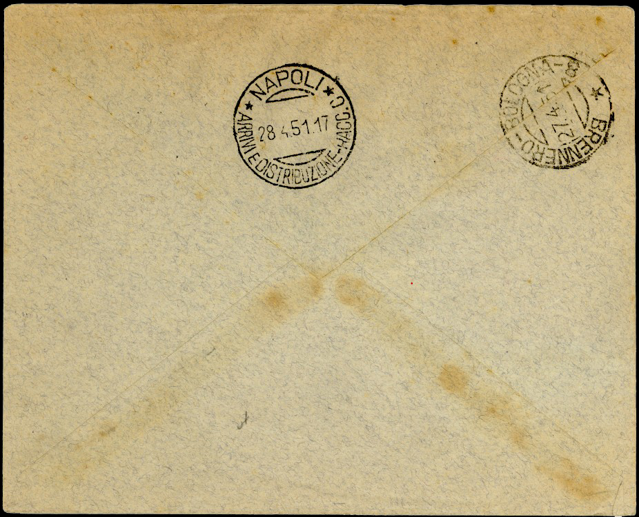 Bologna 27th April and Napoli 28th April 1951 on arrival.