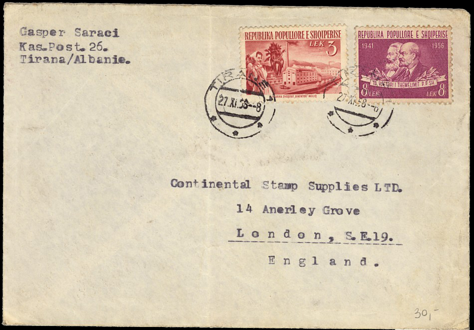 letter from Tirane 7th May 1953 to Bilisht, with arrival